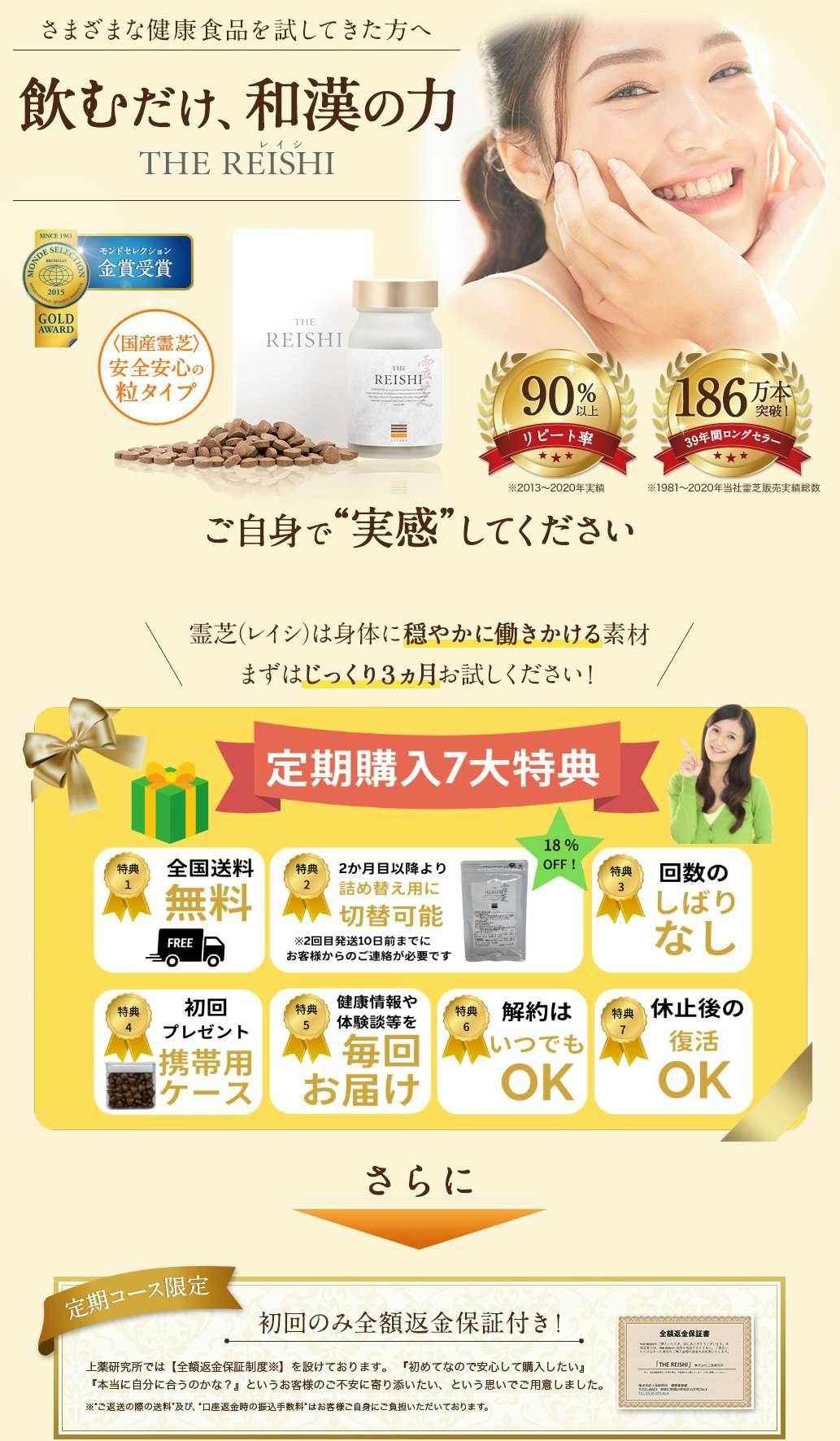 THE REISHIは健康食品ですので、決まった量を飲むお薬とは違い、何粒飲んでも大丈夫です。